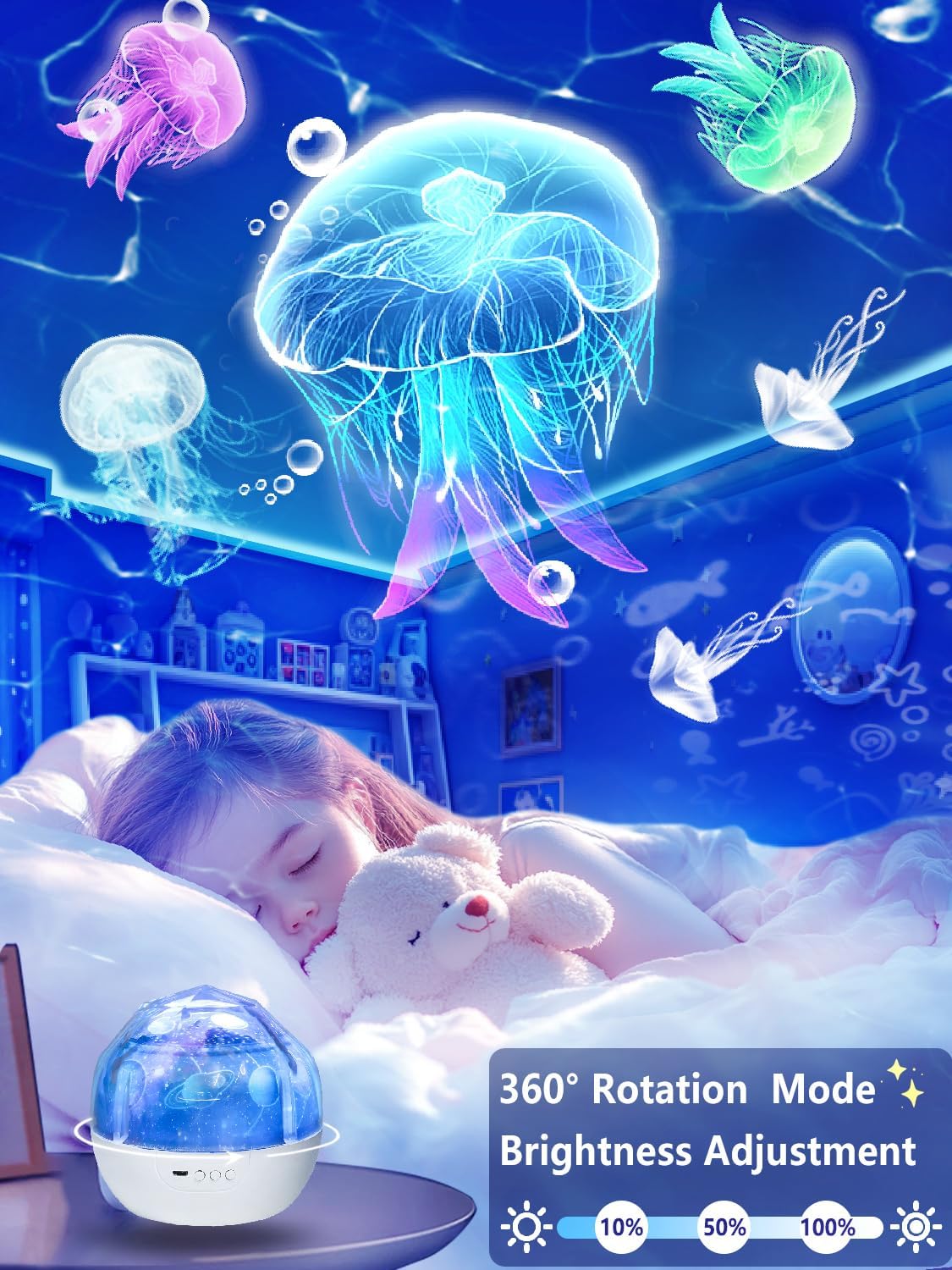 6 LIGHT MODES + 360° ROTATING OCEAN NIGHT LIGHT PROJECTOR: With 21 movies and 6 colours of light, the Unicorn Night Light for Children’s Rooms is a night light projector capable of creating more than 100 light modes, and the Bedroom Starlight’s projections are bright and clear enough to be projected throughout the room when the kids turn it on!