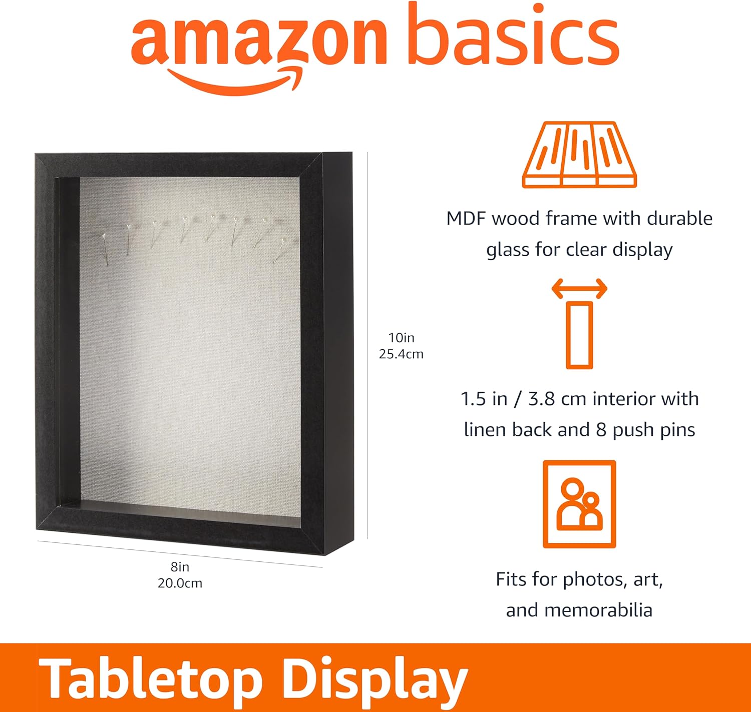 Amazon Basics Shadow Box Wood Rectangular Frame, 8″ x 10″, Black