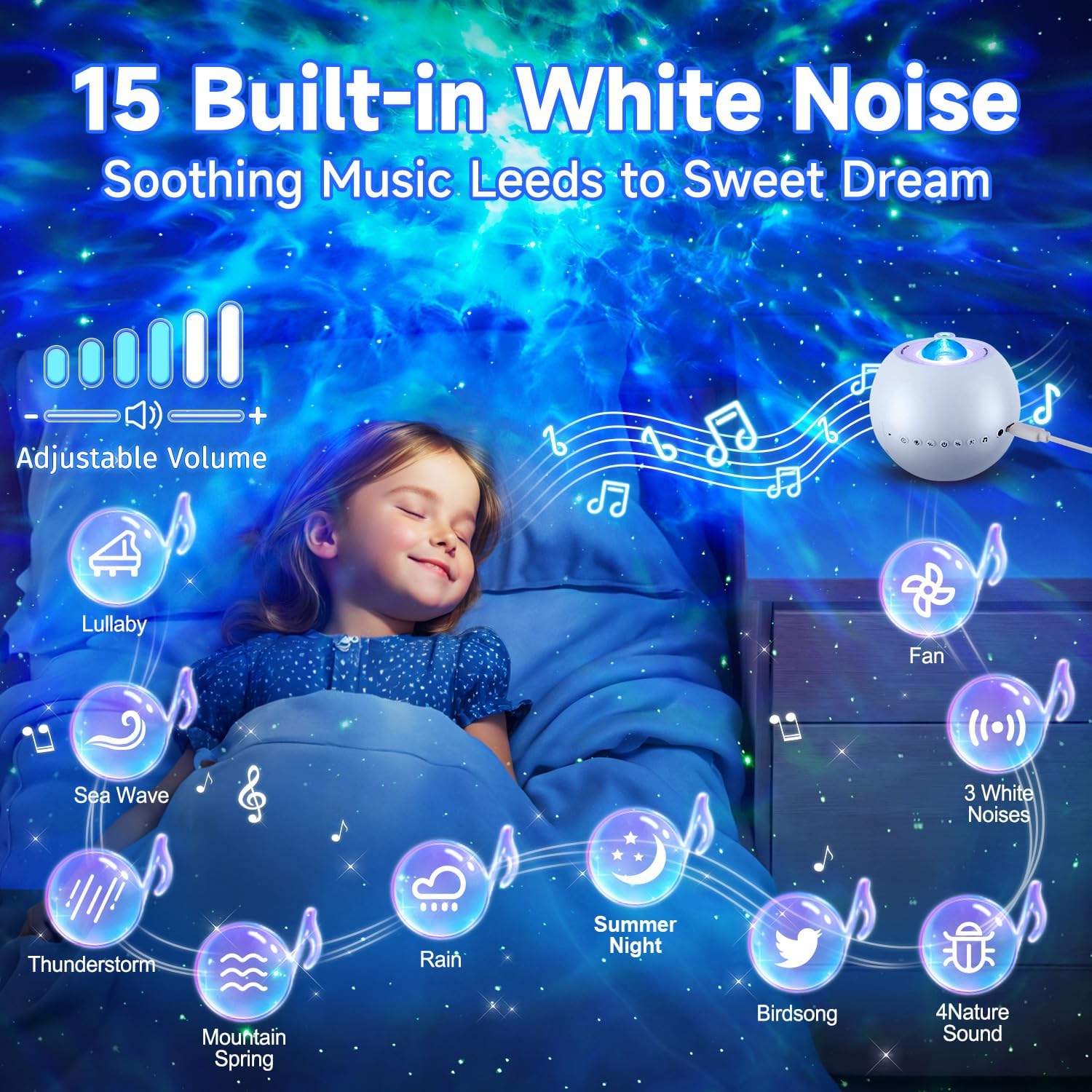 Star projector galaxy light projector for bedroom+Star lights for ceiling projector light+White noise machine+ HiFi Bluetooth speaker+Remote control