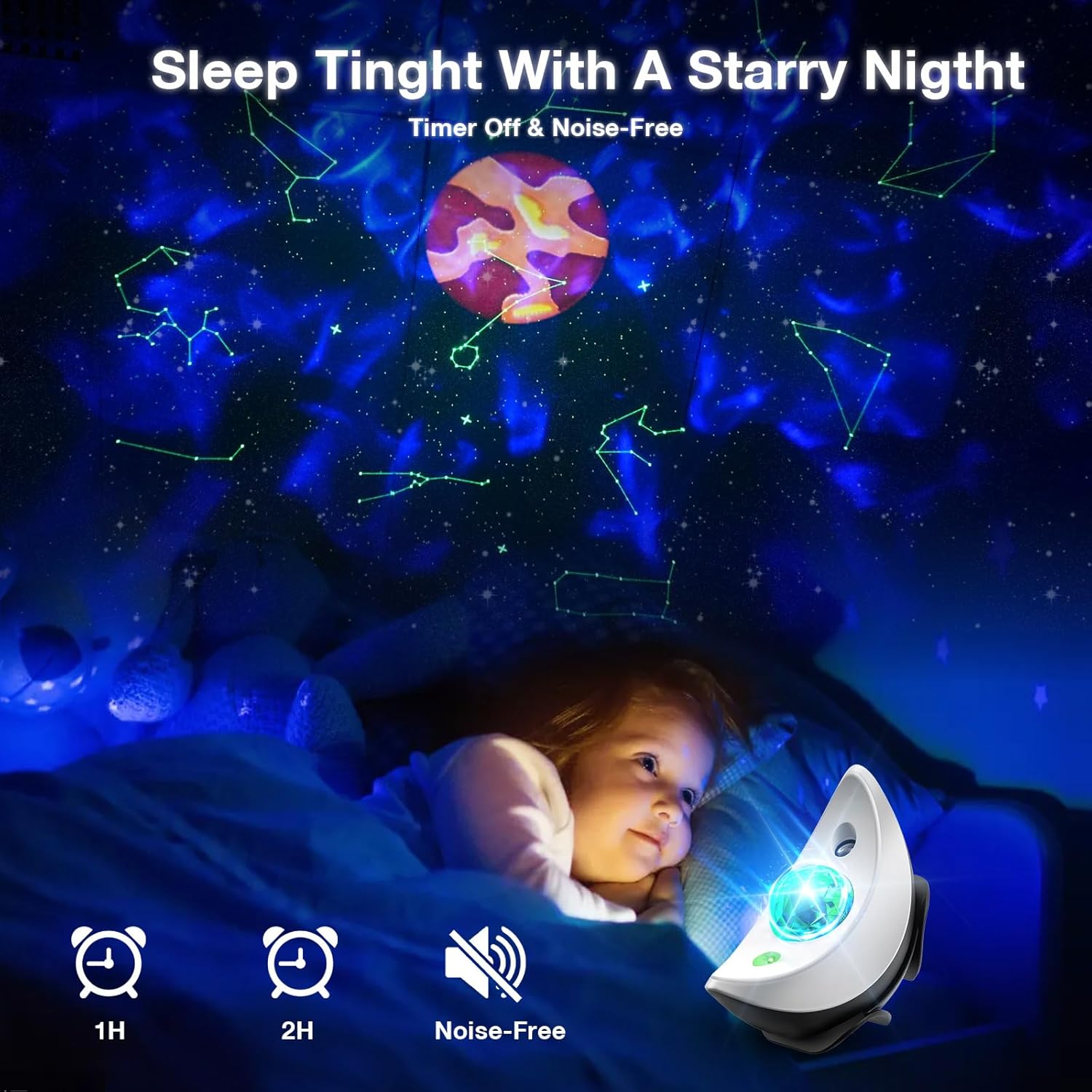 Bluetooth 5.2 Speaker: Our starlight projector built-in Bluetooth 5.2 speaker. Connect Bluetooth device, the stunning sound quality and 12-level volume adjustment of this planetarium projector will not let you down.