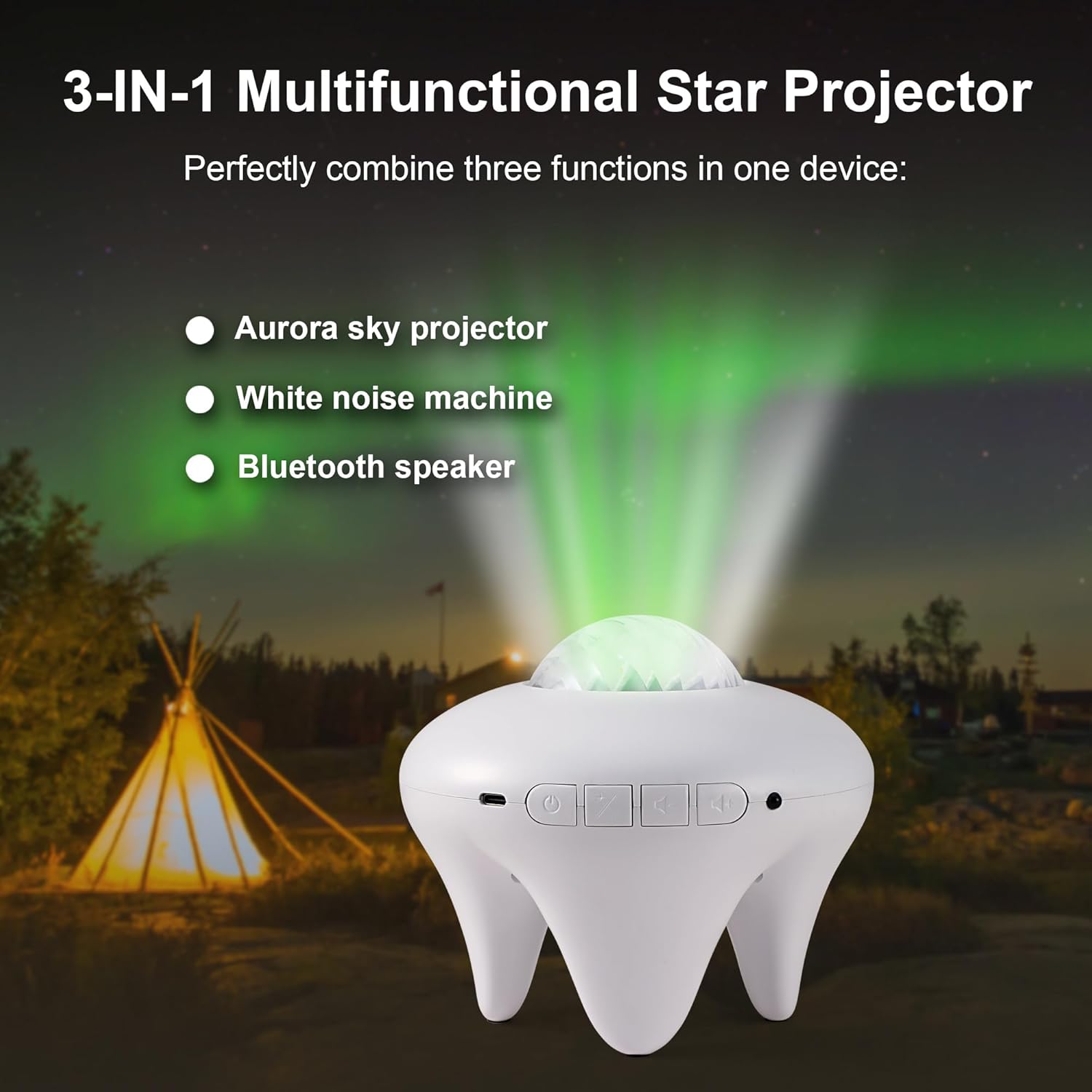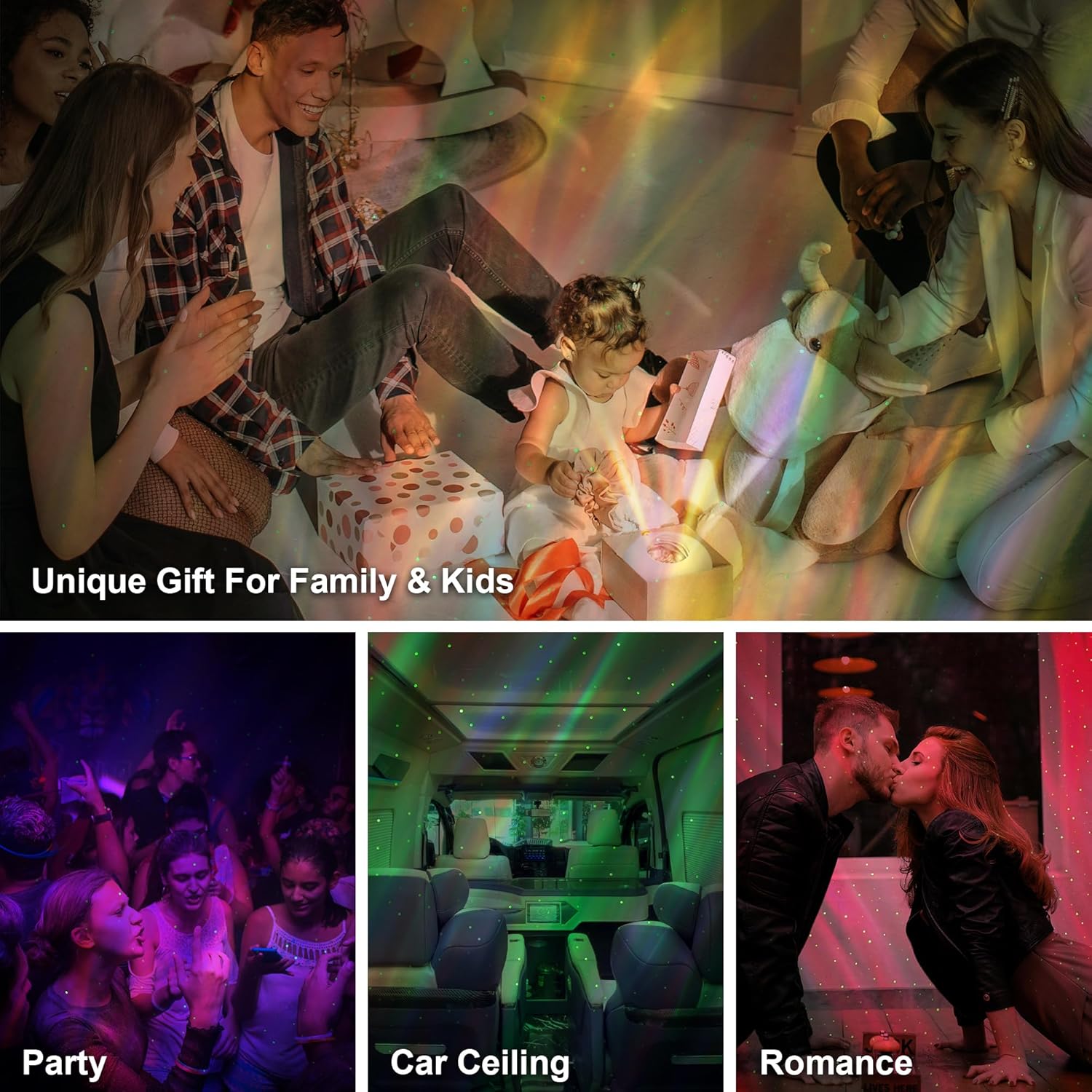 The Galaxy Projector:The star projector is based on four colors of red/green/blue/white, 3 modes and 16 kinds of Northern Lights to choose from, the Galaxy Projector can project the fascinating Northern Lights and the starry sky, sleeping/dancing under the star projector light will bring you the best memories