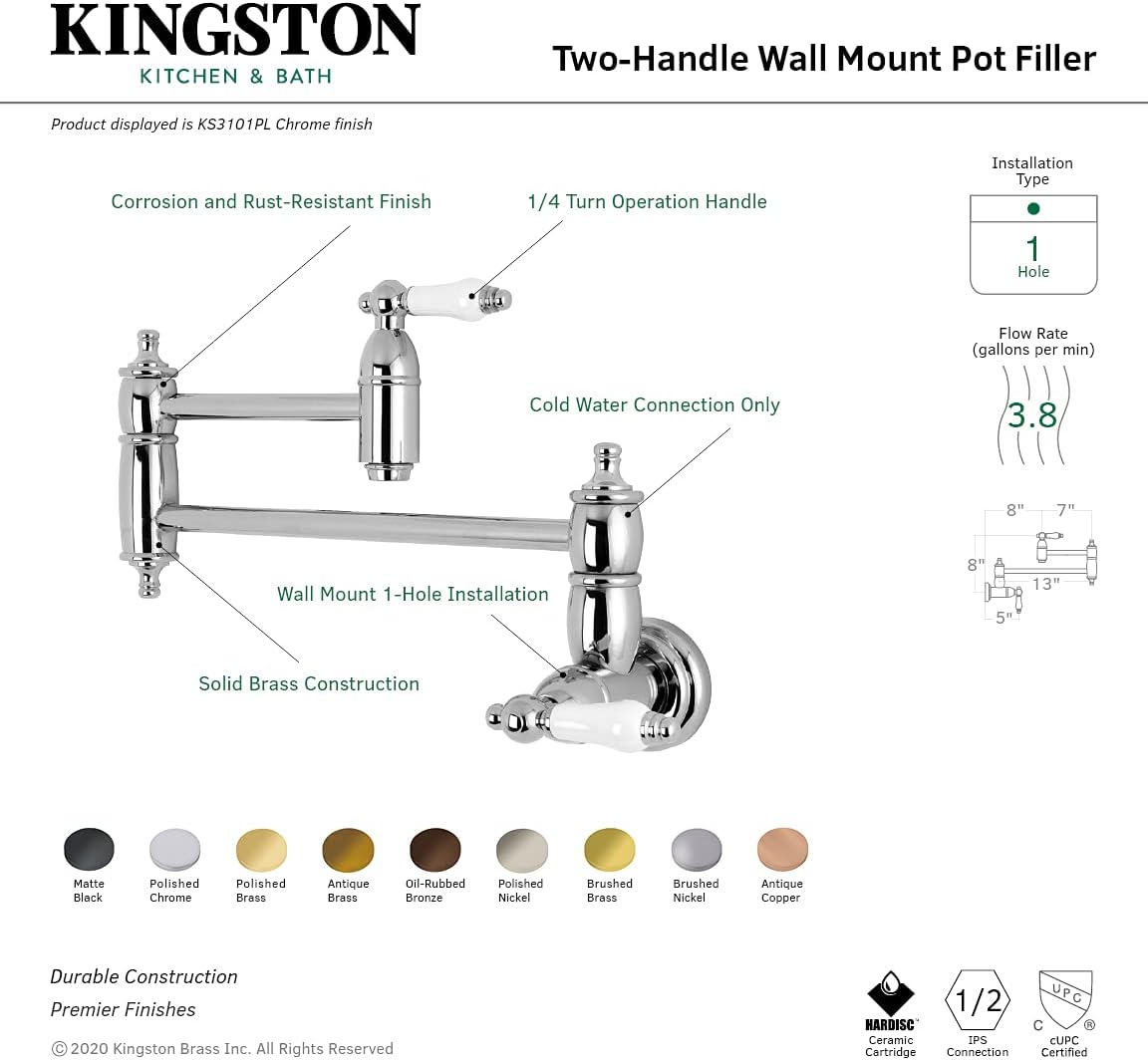 Classical artistry from the late 19th Century to early 20th Century is mirrored beautifully within this faucet’s traditional charm. As an excellent tool to quickly, easily, and stylishly fill pots, eliminate strain on your joints. Pot-fillers are useful gadgets placed directly above the stove, providing easily accessible water. The foldable swing arms of this pot filler allow for extendable reach of up to 20″ of length and provide long-lasting function due to their sturdy brass construction. Additionally, the dual handles prevent unwanted water spillage while enhancing the traditional theme.