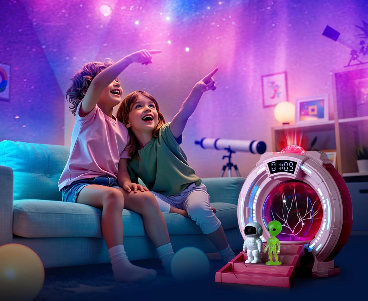 Plasma Ball Night Light,Space Girl’s Room Party Aurora Projector LED Alien Veins Lamp,White Noise,Clock,Remote Control,Bluetooth Speaker,Adults,Kids’ Room Decor Lamps,Christmas,Birthday Gift(Pink)