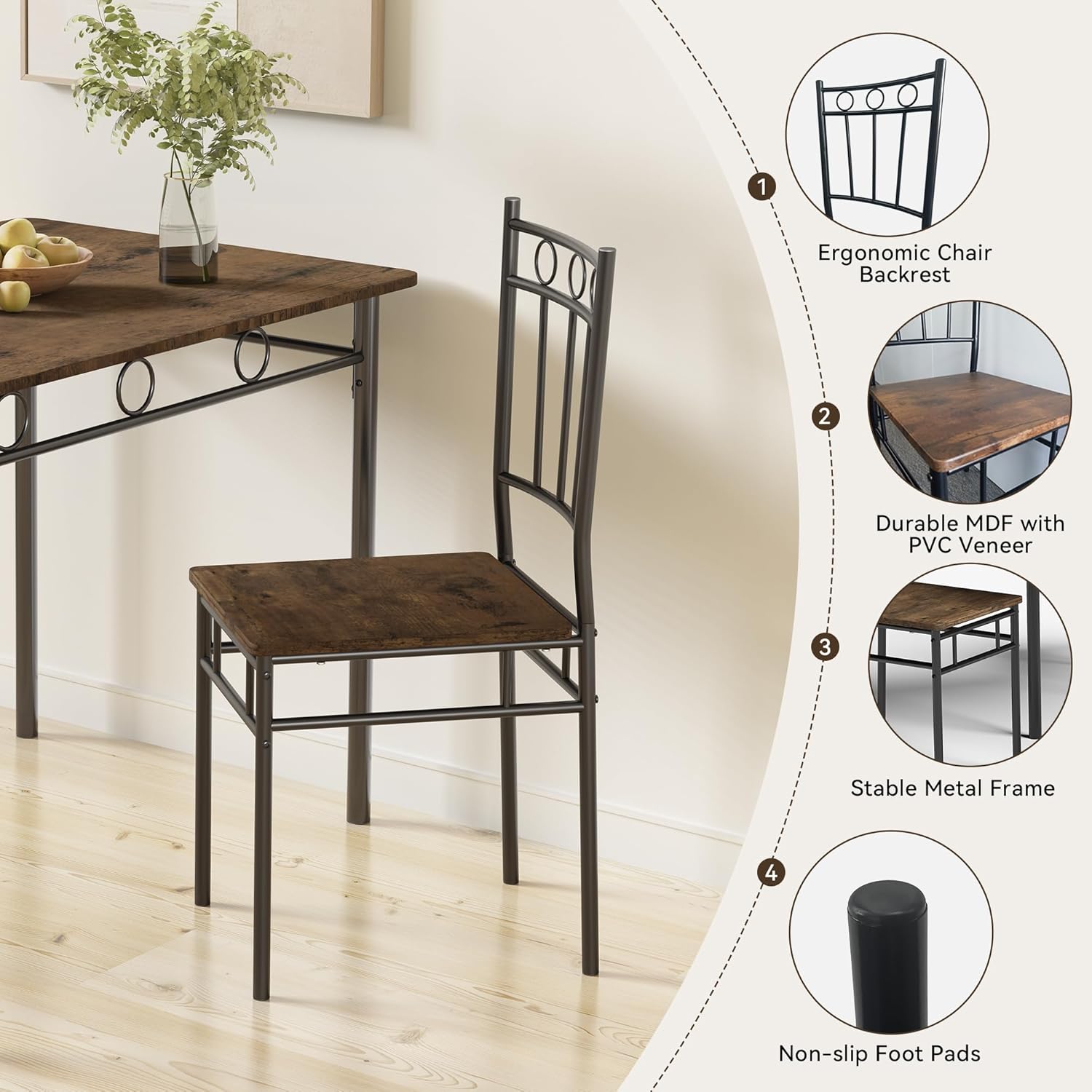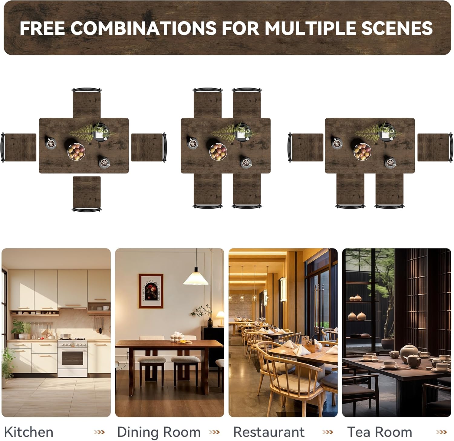 【Comfort & Safety Prioritized】: The chair’s reclining backrest has been ergonomically designed to offer optimal support for your back, providing comfort during prolonged sitting. Besides, every corner of our kitchen table set is rounded, minimizing the risk of injuries in the event of accidental collisions. Moreover, the dining chairs are equipped with non-slip foot pads that enhance stability.