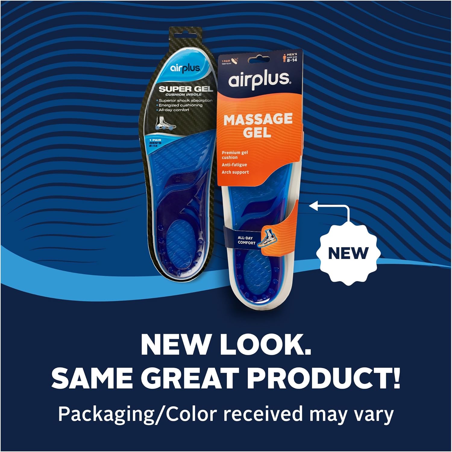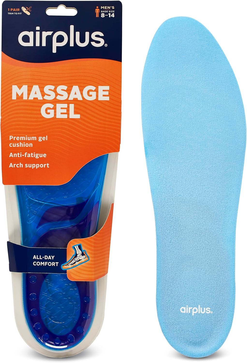 Airplus Super Gel Cushion Insole for Men’s Shoe Sizes, All-Day Comfort, Shock Absorption, Gel Zones, Full-Length Footbed, Trim-to-Fit for Casual, Athletic, Dress Shoes, and Work Boots