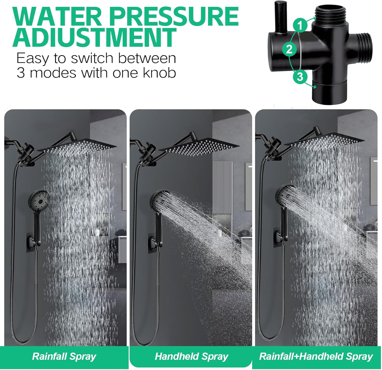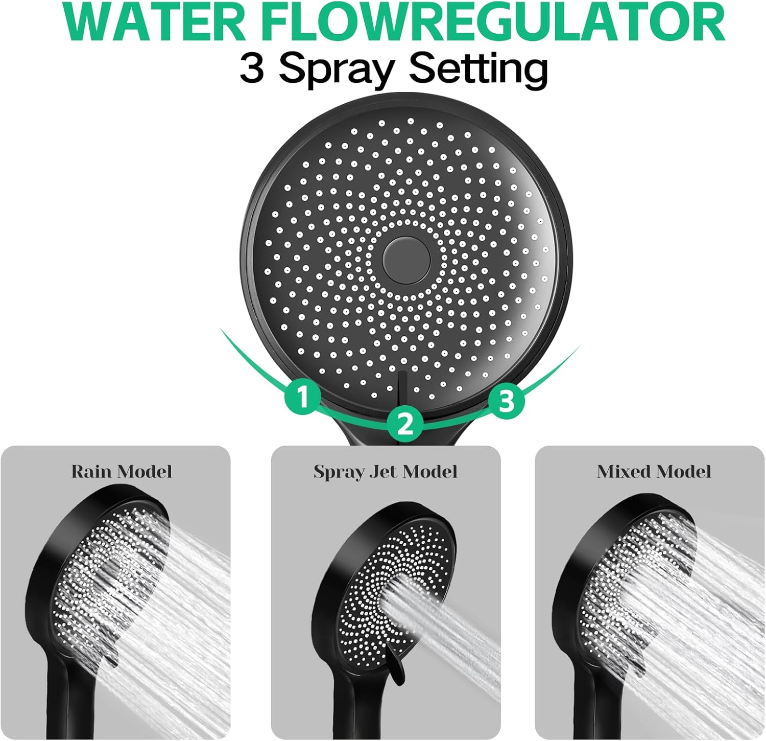 【 Handheld Spray Mode 】Perfect family showering solution that allow you to change the shower function simply by turning the button.3 spray modes make it more convenient to choose your ideal shower needs. Very suitable bathing kids, washing pets applications.