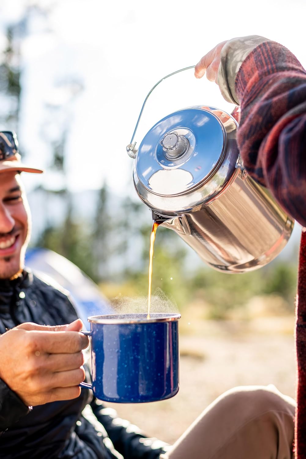 Customers find this coffee pot excellent for camping, particularly around the campfire, and appreciate its generous size that makes 8 large mugs of coffee. Moreover, the pot works well on campfires, delivers good coffee quality, and offers excellent value for money. However, customers disagree on the pot’s sturdiness, with some finding it well-built while others describe it as flimsy. Additionally, the material thickness receives negative feedback, with customers noting its very thin aluminum construction.