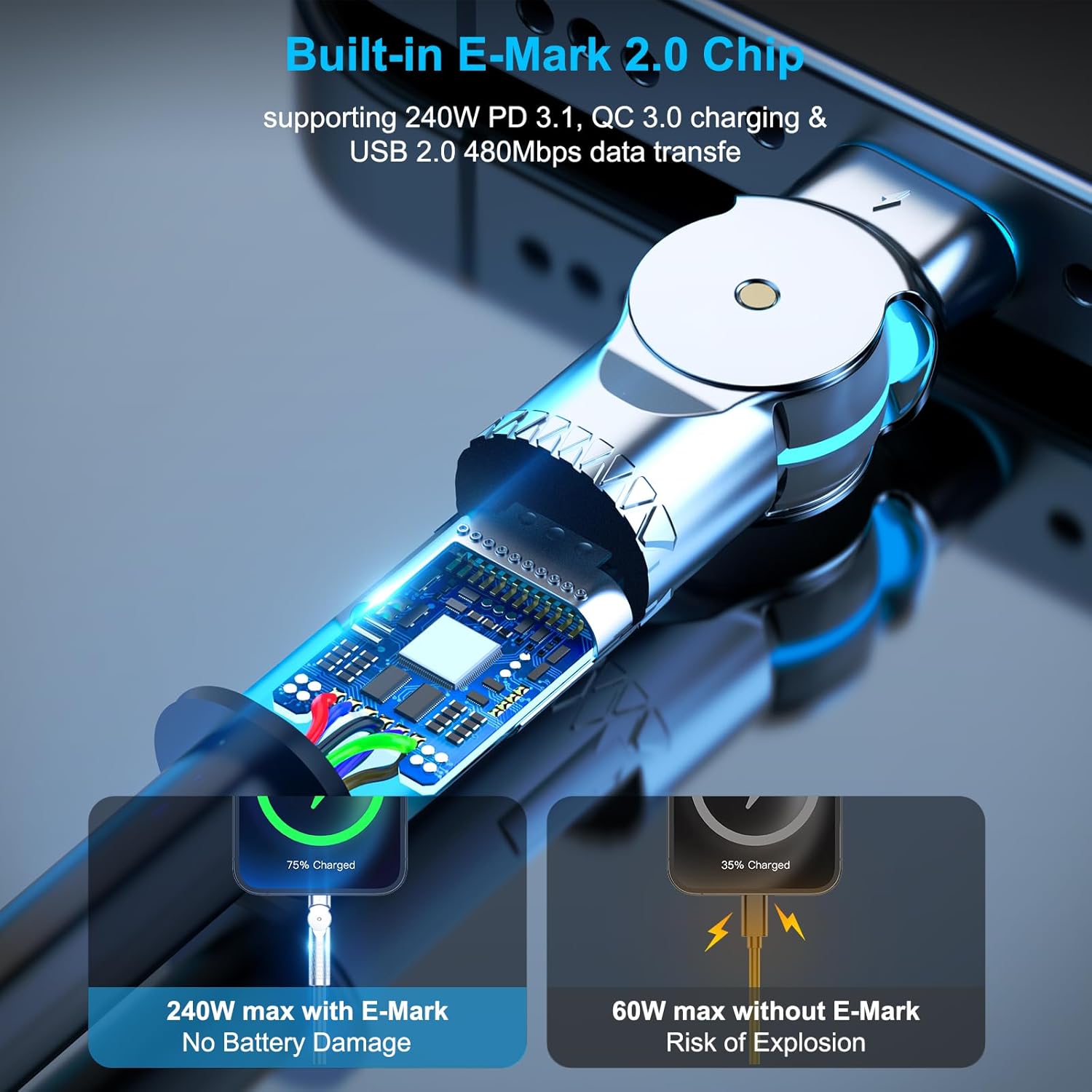 240W Rapid Charging &480Mbps DATA TRANSFER: The usb c to usb c cable is built in E-marker chip, supporting 240W PD 3.1, QC 3.0 charging & USB 2.0 480Mbps data transfer.the type c charger cable supports high-speed charging up to 240W without battery damage when used with a compatible charger. the c to c cable is a solid choice for users who prioritize fast charging, high safety, long reach and a touch of style